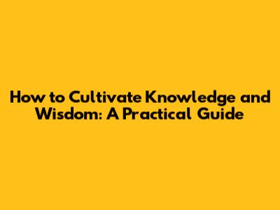 Cultivating Knowledge And Wisdom: A Practical Guide