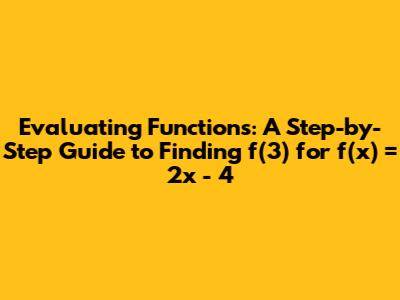 In the realm of mathematics, understanding functions is a cornerstone of problem-solving. Evaluating a function for a given value is a fundamental skill. If you're just starting out with functions, don't worry – it's a straightforward process once you grasp the concept. In this article, we'll break down how to evaluate the function f(x) = 2x - 4 when x = 3, step by step. Whether you're a student tackling algebra or simply curious about math, this guide will provide a clear and concise explanation. So, let's dive in and learn how to find f(3)!