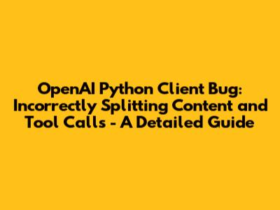 In this article, we'll dive deep into a specific bug found in the OpenAI Python client, which incorrectly splits content and tool calls into separate messages. This can lead to various issues, including API compatibility problems, inaccurate context, and degraded model responses. We’ll explore the root cause, impact, and a suggested fix, ensuring you understand the intricacies of this bug and how to resolve it.