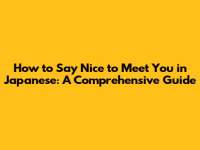 Nice To Meet You In Japanese: A Comprehensive Guide